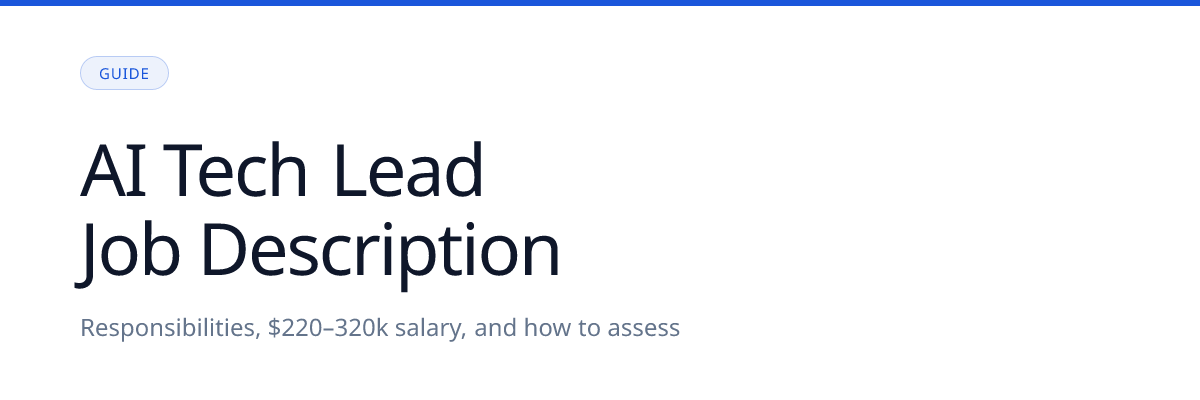 This guide covers what an AI Tech Lead actually does, what they earn, how to write a job description that attracts the right candidates, and a 4-stage assessment framework that surfaces both technical depth and leadership capability.