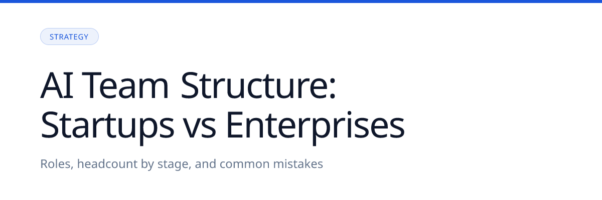 If you are building your first AI department, the single most important hire is the first senior ML engineer or AI tech lead — someone who can define the technical approach, make early architecture decisions that compound, and eventually help you hire the rest of the team. Getting this hire right is worth slowing down and raising your bar; the wrong first ML hire sets a technical direction that is expensive to unwind.