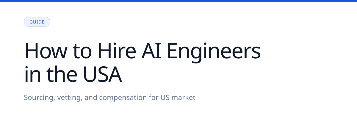 Both approaches work. San Francisco and New York have the densest concentration of experienced AI talent, but they command the highest compensation — top of the US range. Remote hiring expands your addressable pool significantly and can reduce compensation costs by 15–25% for equivalent talent, but requires stronger onboarding, clearer async communication, and deliberate culture-building. The right answer depends on your team's collaboration model. Companies that hire remote AI engineers successfully are explicit about how they work, not just where.